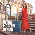 Its sleek navy blue polypropylene shell is not only stylish but also exceptionally durable, offering superior protection for your belongings against bumps and rough handling. The star of the show is the advanced 8-wheel double spinner system that provides effortless 360-degree maneuverability, letting you navigate crowded terminals and narrow aisles with just a fingertip touch.