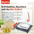 Elevate your grilling experience with the Skyline Mini Griller, a compact and powerful 1200W appliance designed for quick and easy meals. Its cool-touch handle, automatic temperature control, and non-stick cooking plates make it perfect for creating delicious sandwiches, snacks, and more with minimal effort. The floating hinge system adapts to any sandwich size, while the stainless steel matt finish adds a touch of elegance to your kitchen.