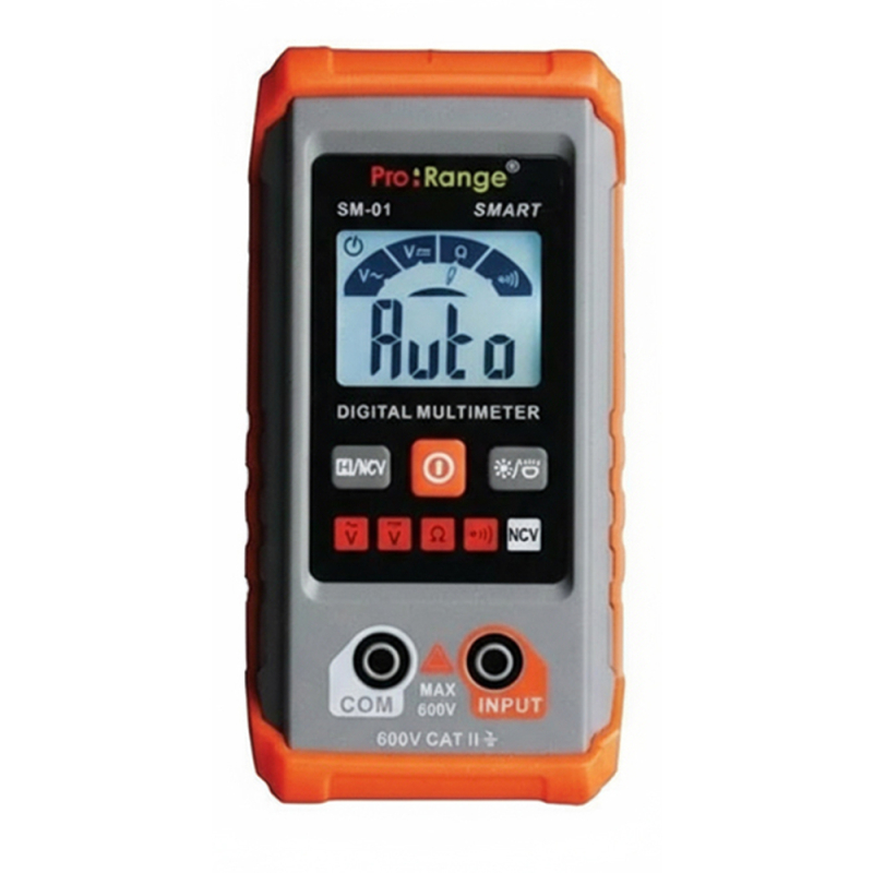 The Pro-Range SM-01 Smart Digital Multimeter is a modern, easy-to-use testing instrument designed for electricians, technicians, engineers, students, and DIY users. With auto-function selection, non-contact voltage detection, and a clear backlit display, it delivers fast, accurate, and hassle-free measurements in a compact body.